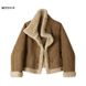 MUYU Motorcycle Style Suede Faux Shearling Short Coat for Women Winter New Warm Top Trendy
