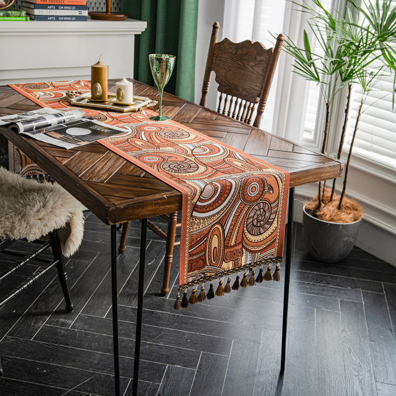 Nappe à pampilles de style ethnique rétro, drapeau de table de luxe léger américain, drapeau de chevet