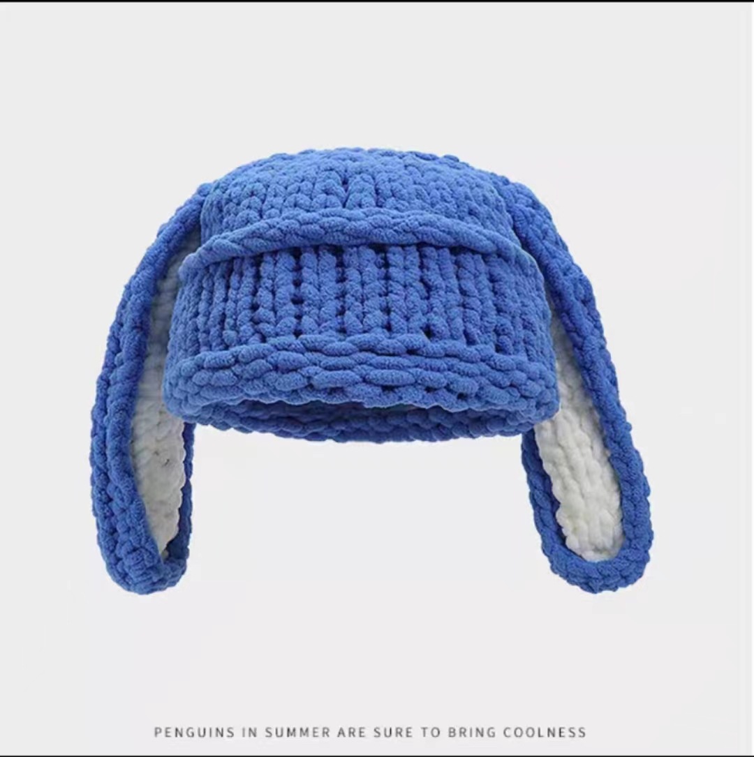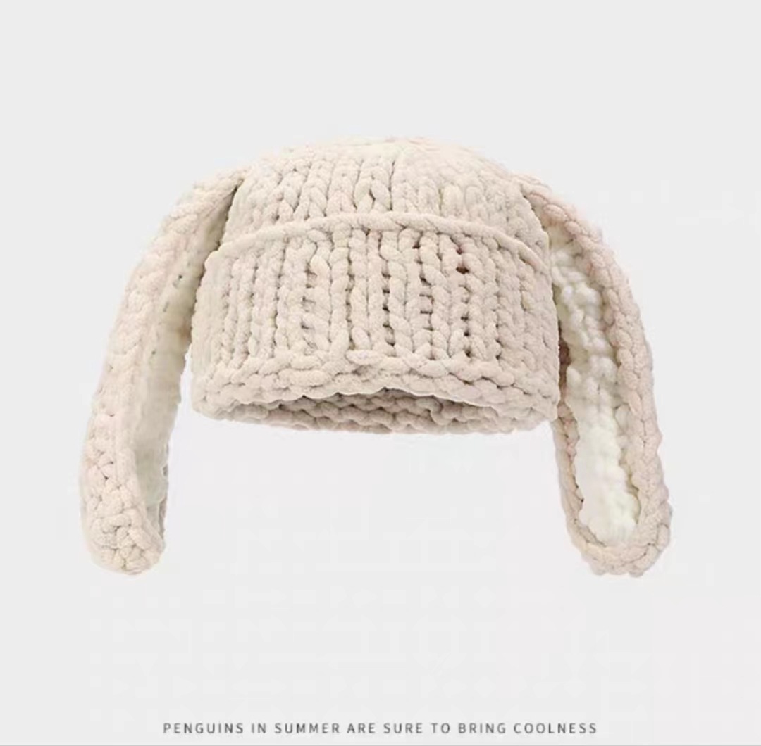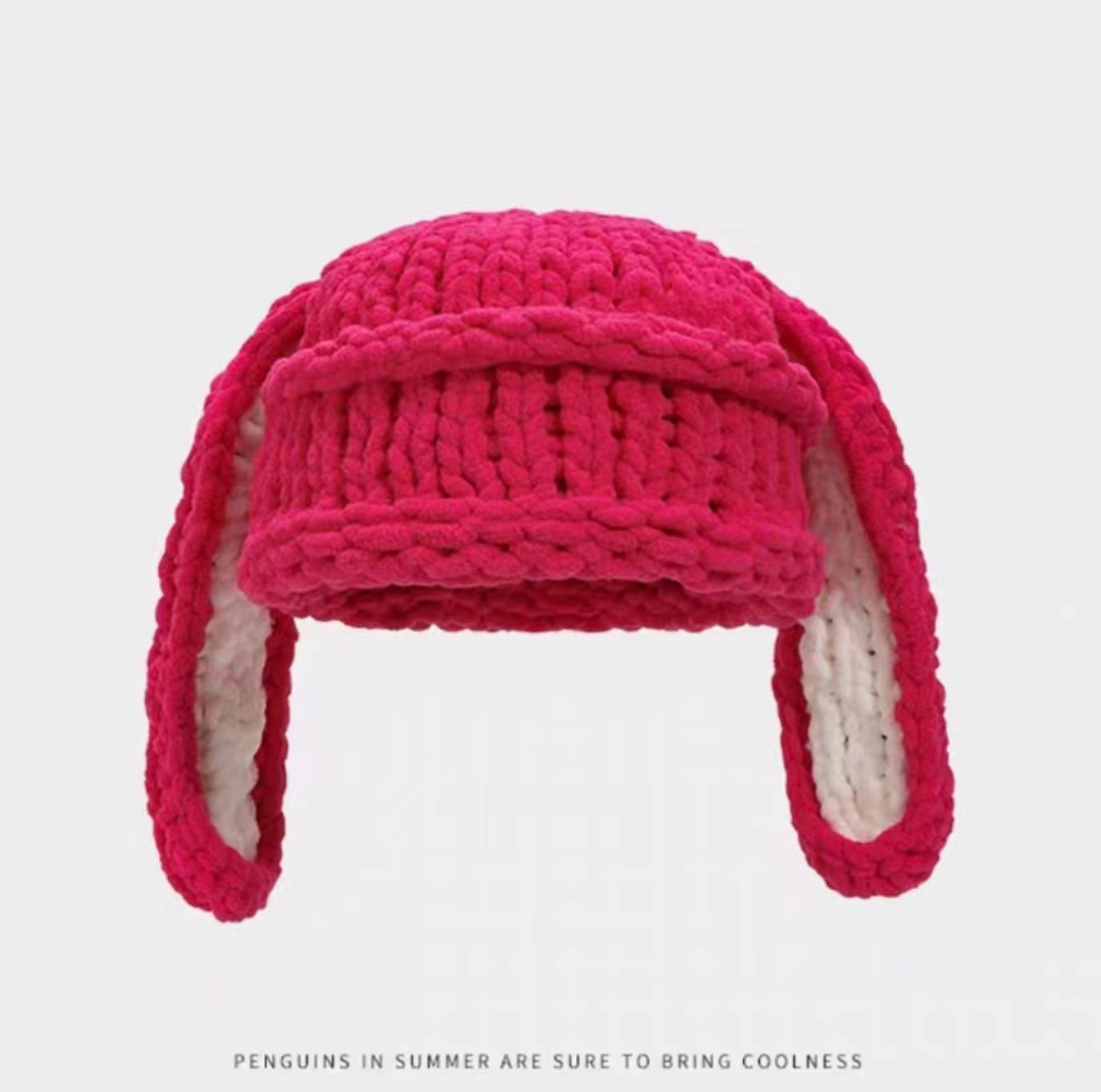 Nouveau dessin animé oreilles de lapin mignonnes et douces chapeau tricoté à la main avec du fil de laine pour la chaleur polyvalente et le visage des enfants mettant en valeur un petit chapeau en laine