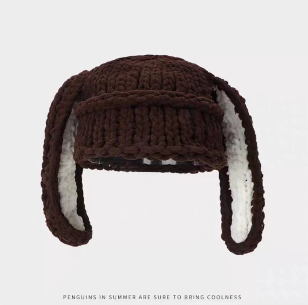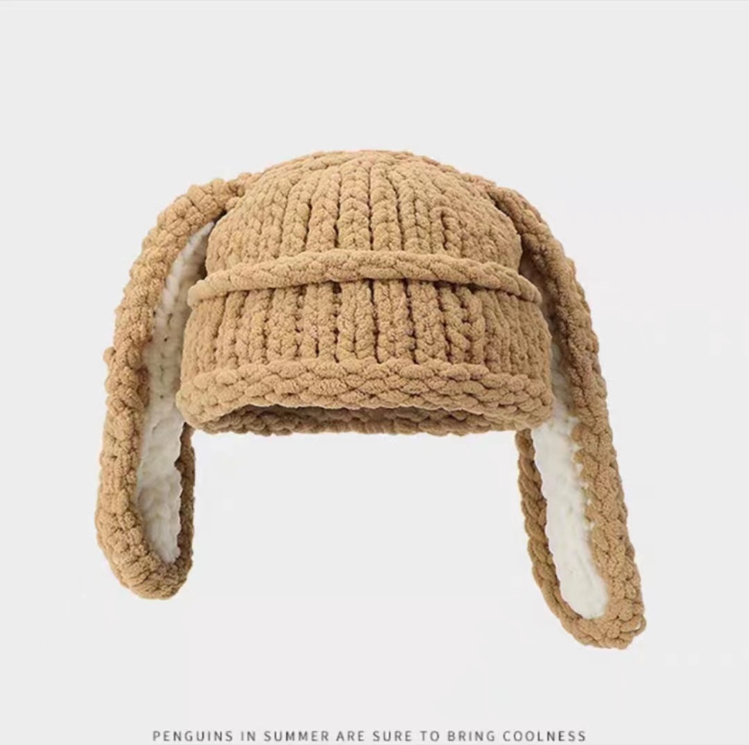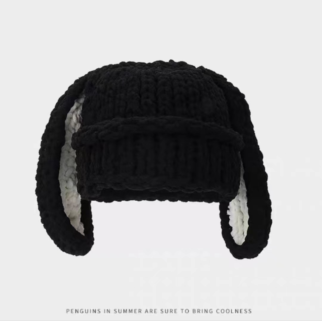Nouveau dessin animé oreilles de lapin mignonnes et douces chapeau tricoté à la main avec du fil de laine pour la chaleur polyvalente et le visage des enfants mettant en valeur un petit chapeau en laine