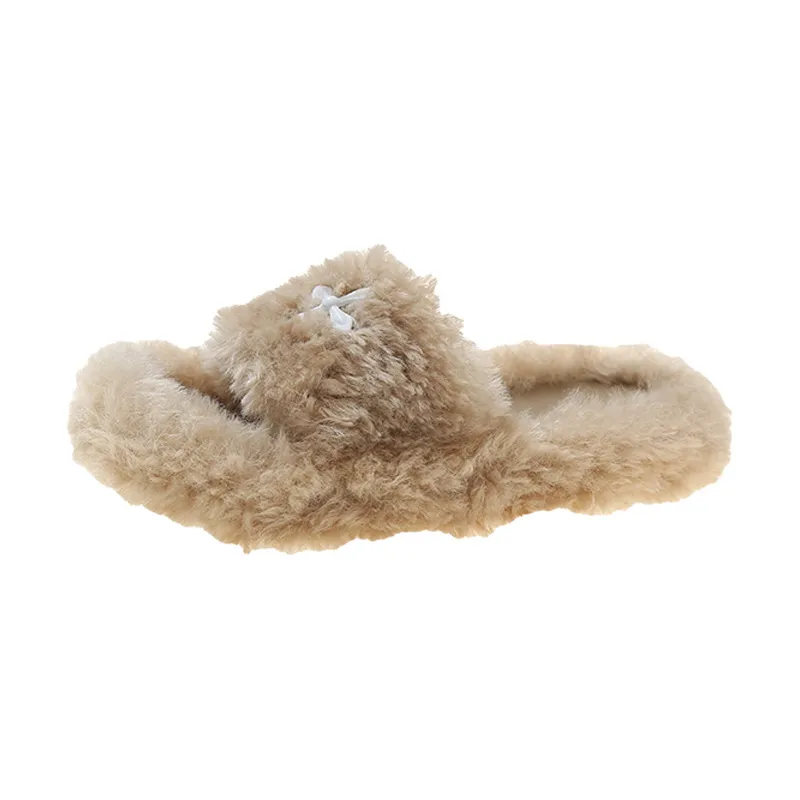 Nouveauté Livraison gratuite Pantoufles en laine chaudes et confortables pour femme, style créateur, idéales pour l'intérieur et l'extérieur. Sandales décontractées en peluche.