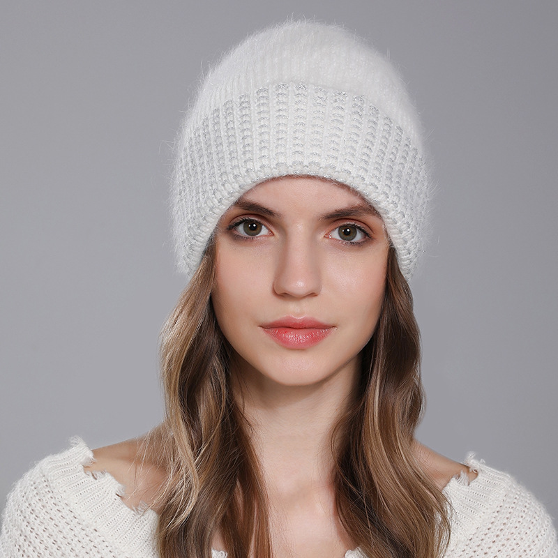 Nouveau tricoté enfants chaud hiver Angora lapin cheveux mode laine femmes pull chapeau