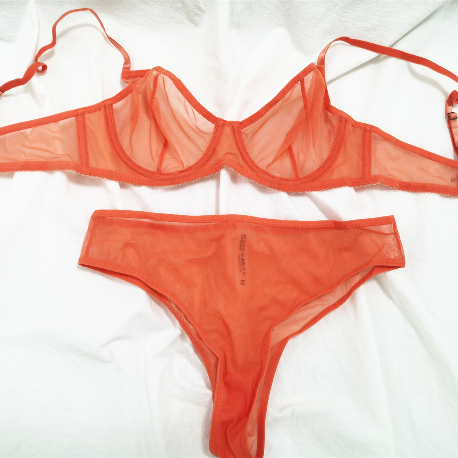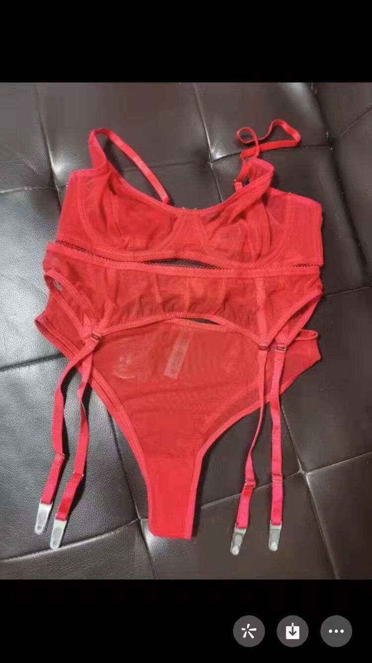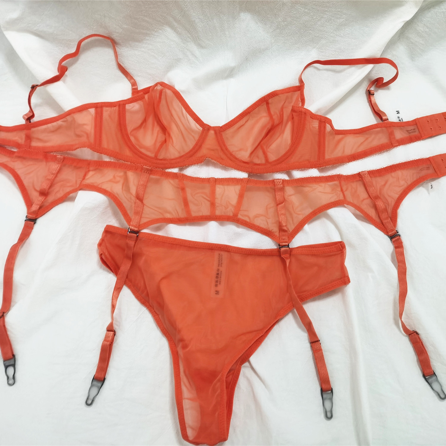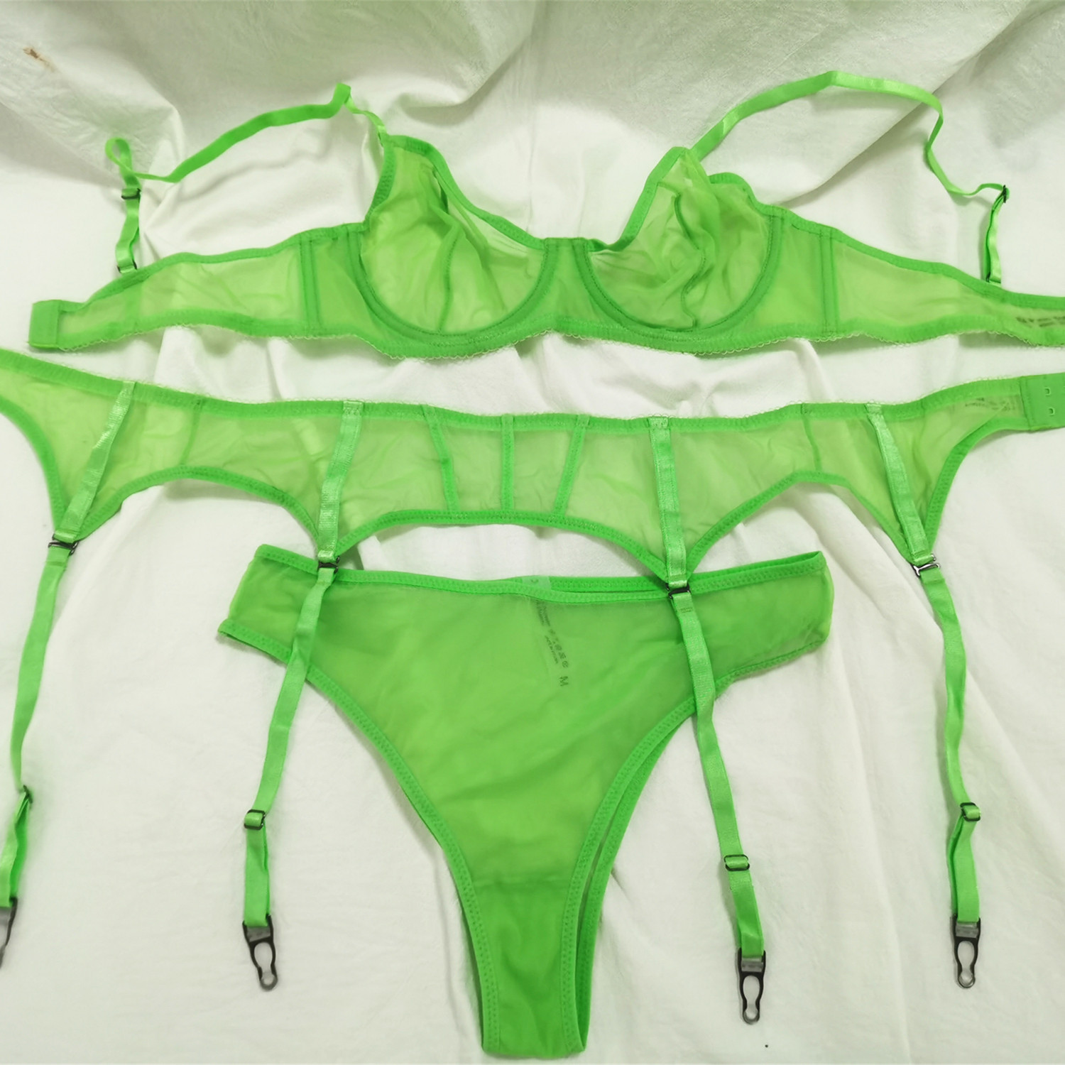 New sexy perspective bra set, women's fun lingerie, ultra-thin bra, garter belt, three piece set