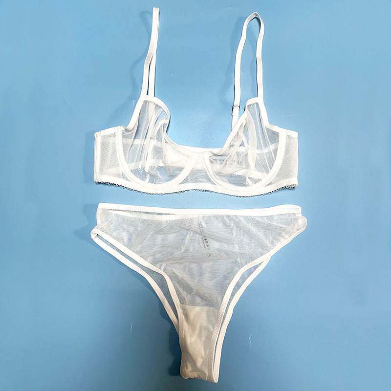 Nouvel ensemble de soutien-gorge sexy perspective, lingerie amusante pour femmes, soutien-gorge ultra-fin, porte-jarretelles, ensemble trois pièces