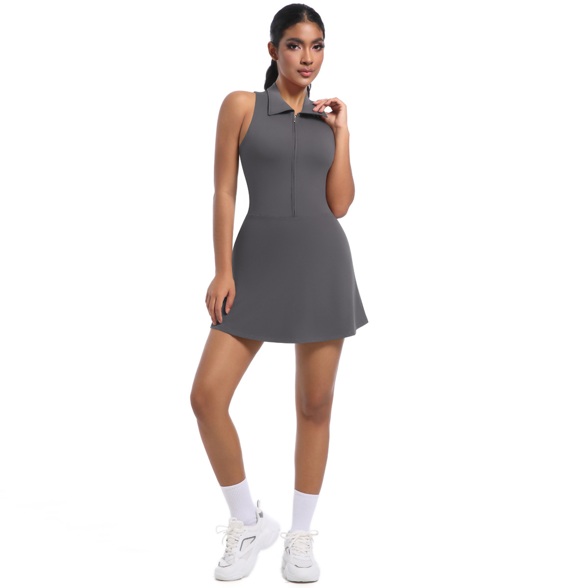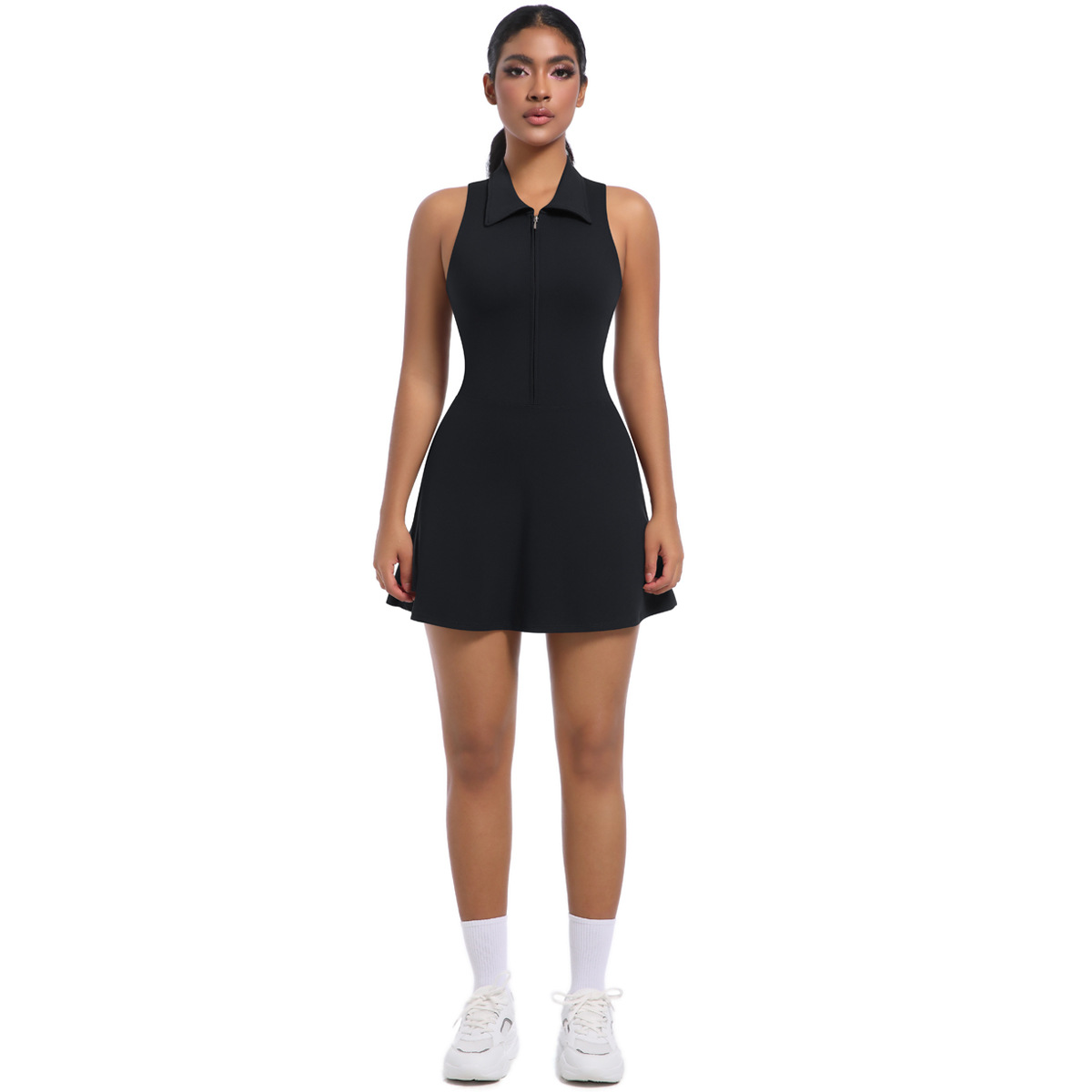 Nouvelle robe de sport taille haute à col rabattu et coupe ajustée pour femme, tenue de course, de golf, de tennis, de yoga
