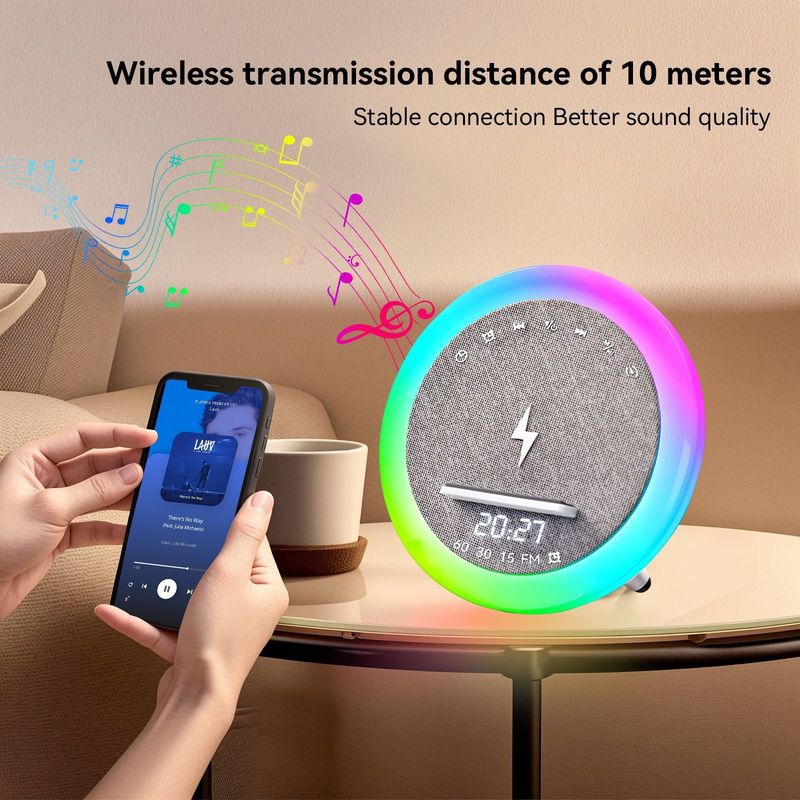 Nouvelle enceinte multifonctions Bluetooth S302 avec affichage LED, alarme, chargement sans fil et bruit blanc.