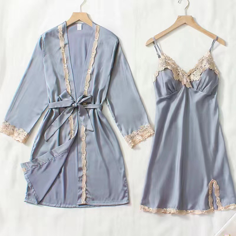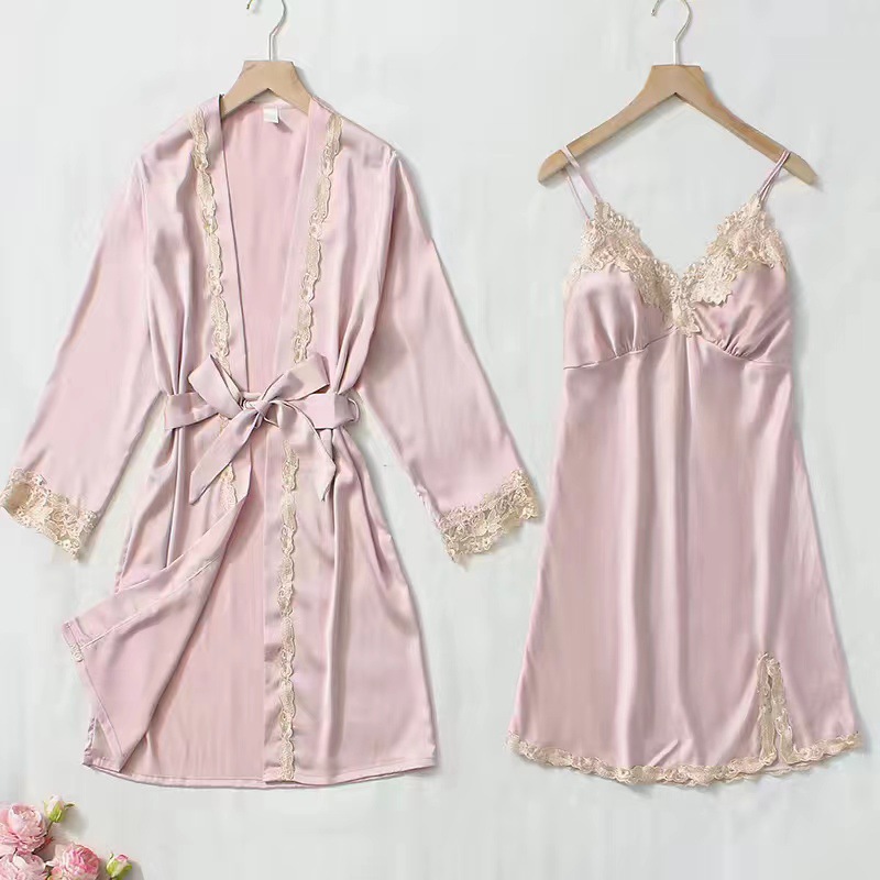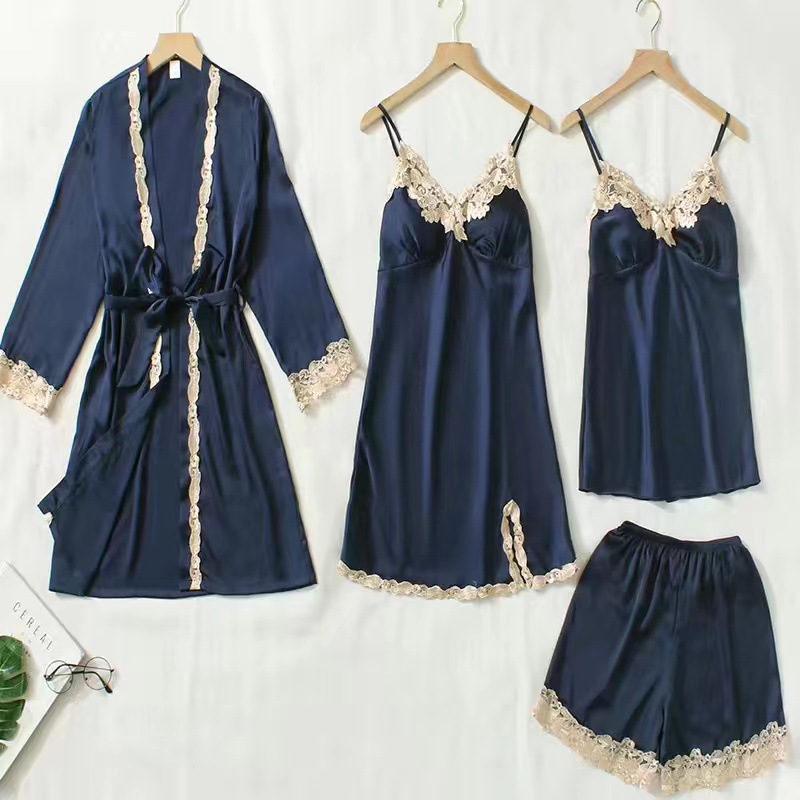 Pyjama d'été pour femme, nouveau, manches longues, bretelles en dentelle, short, pantalon, chemise de nuit, ensemble cinq pièces, soie fine, vêtements de maison