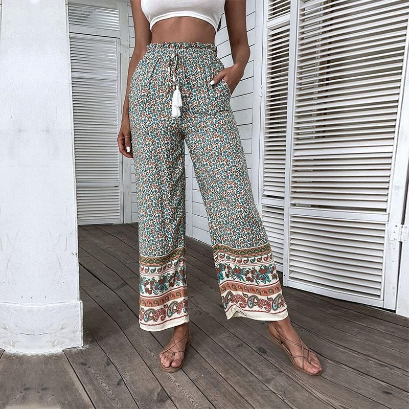 Pantalon ample imprimé bohème pour femmes, jambes larges, nouvelle collection 2023