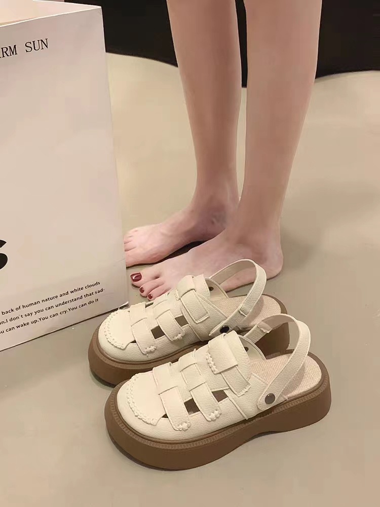 Two pairs of woven toe thick sole sandals for women's 2023 new summer white casual versatile Luo
