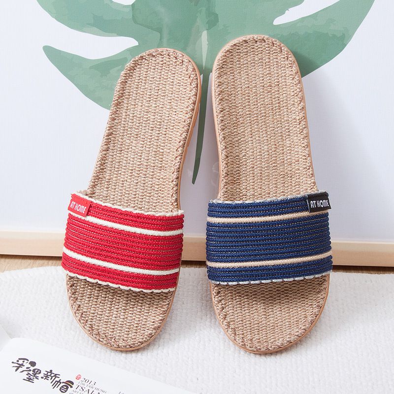 Pantoufles d'intérieur en lin pour couples, chaussures d'été de taille moyenne pour hommes et femmes, semelles plates, pour la maison, 2025
