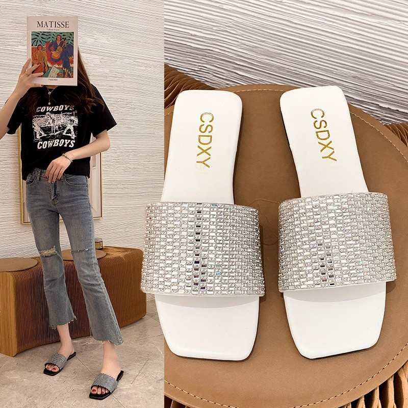 Large size flat slippers 2023 Full Sky Star Colorful Water Diamond Fashion One word Band Outdoor Leisure Beach Summer
