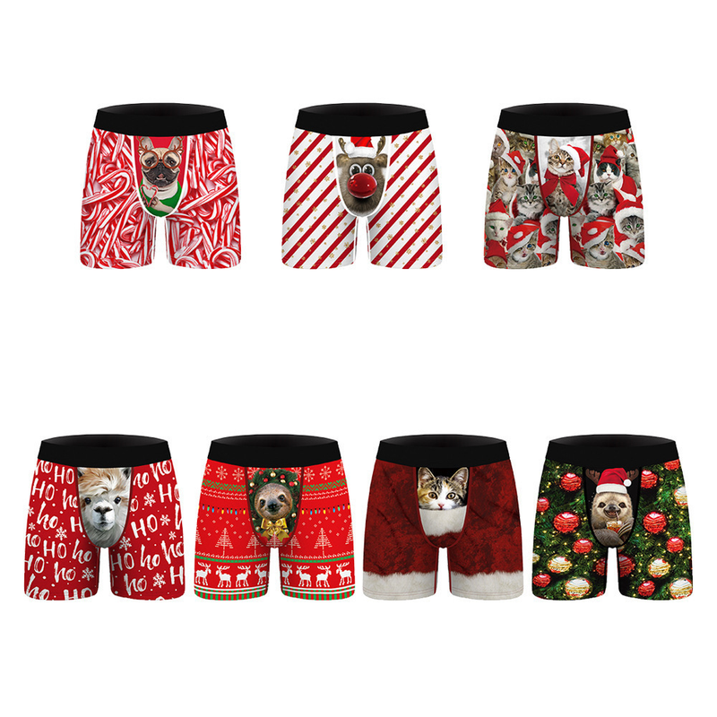 Paresseux de Noël, impression numérique 3D, sous-vêtements confortables pour hommes, pantalons à coins plats en Polyester respirant