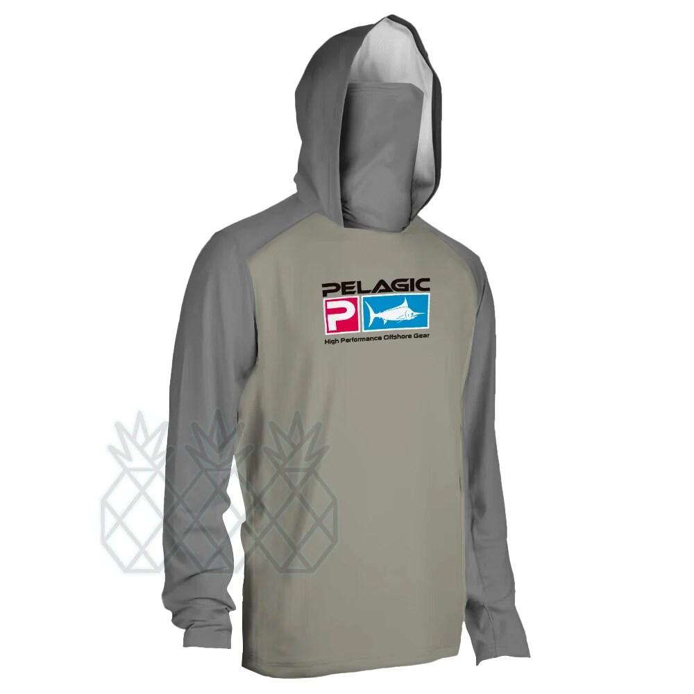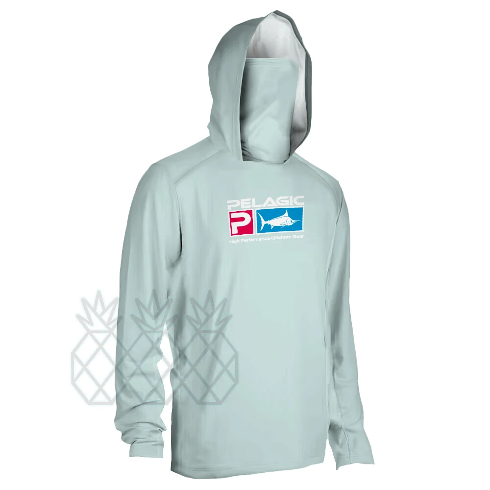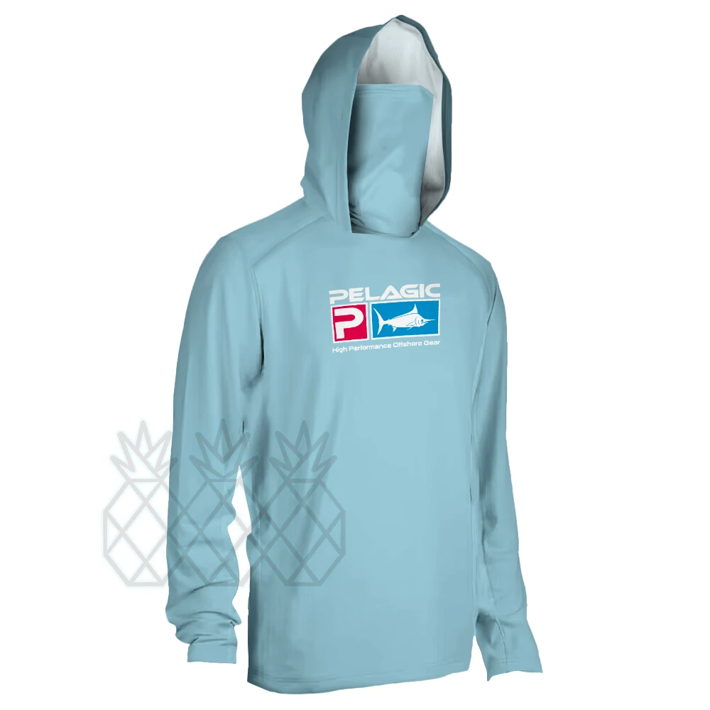 Chemise de pêche pélagique UPF 50 + chemise de pêche à capuche pour hommes avec masque T-shirt UV vêtements de pêche à capuche Moisture787