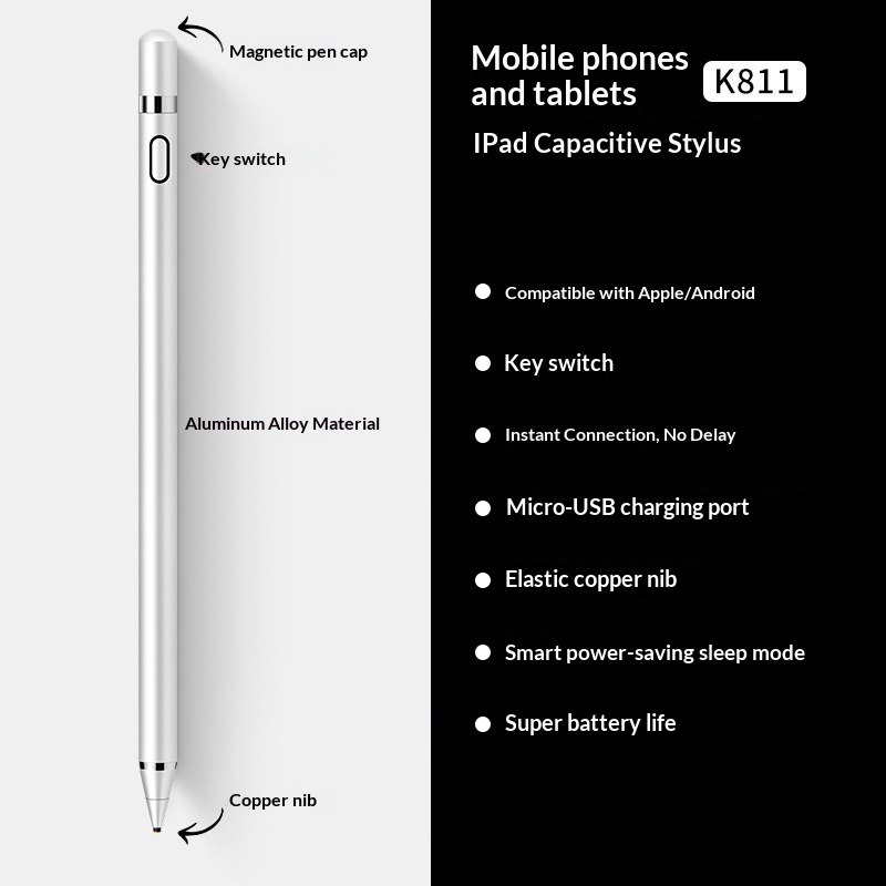 Stylet magnétique rechargeable capacitif compatible avec iPad Touch et écran tactile Bluetooth
