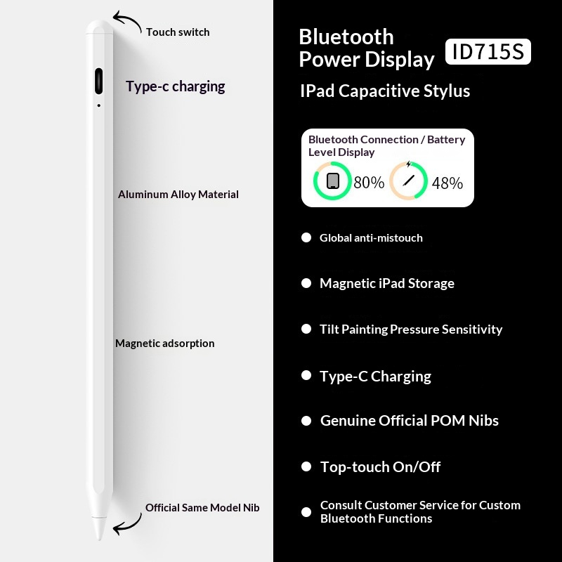 Pencil Magnetic Charging Capacitive Pen Compatible with Apple iPad Touch Pen Bluetooth Display Touchscreen Pen