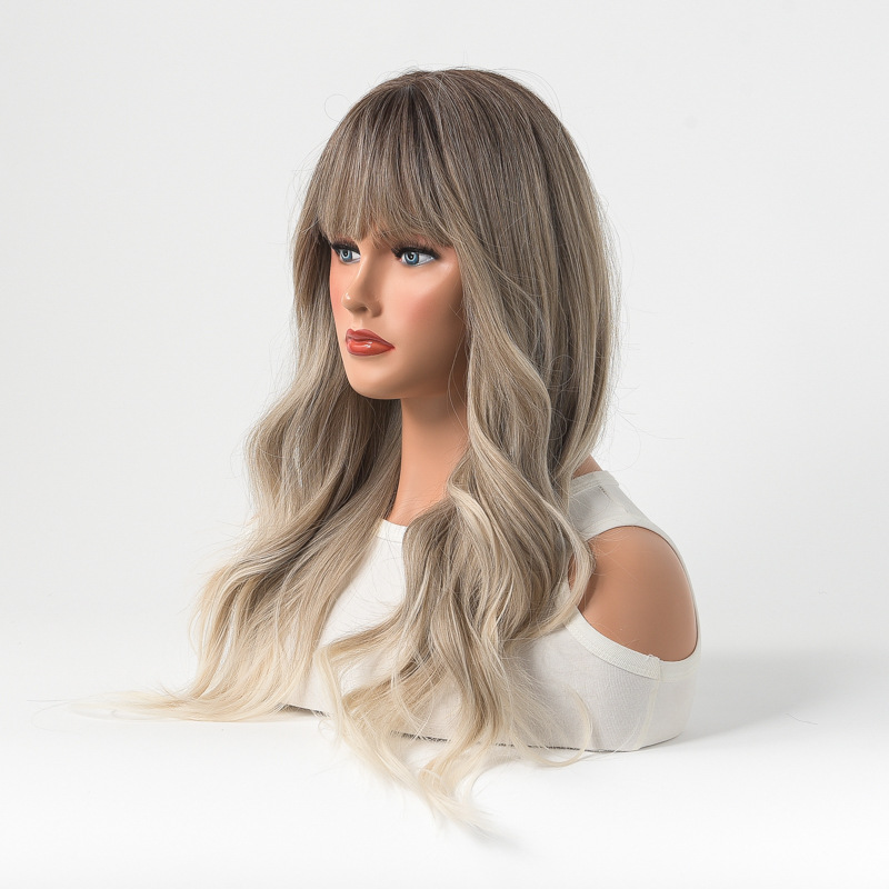 perruques pour femmes cheveux frange cheveux longs bouclés dégradé platine nouvelle machine faite perruques de tête en fibre chimique