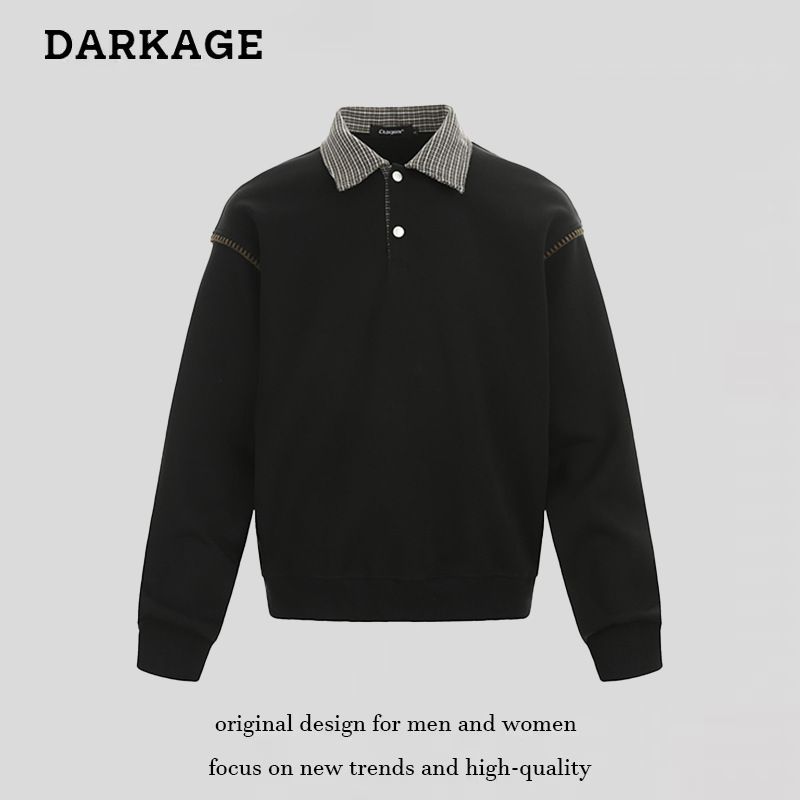Old Money Style Houndstooth Patchwork Polo Collar Sweatshirt Unisex 2025 Autumn Cleanfit Turn-down Collar Top Trendy
