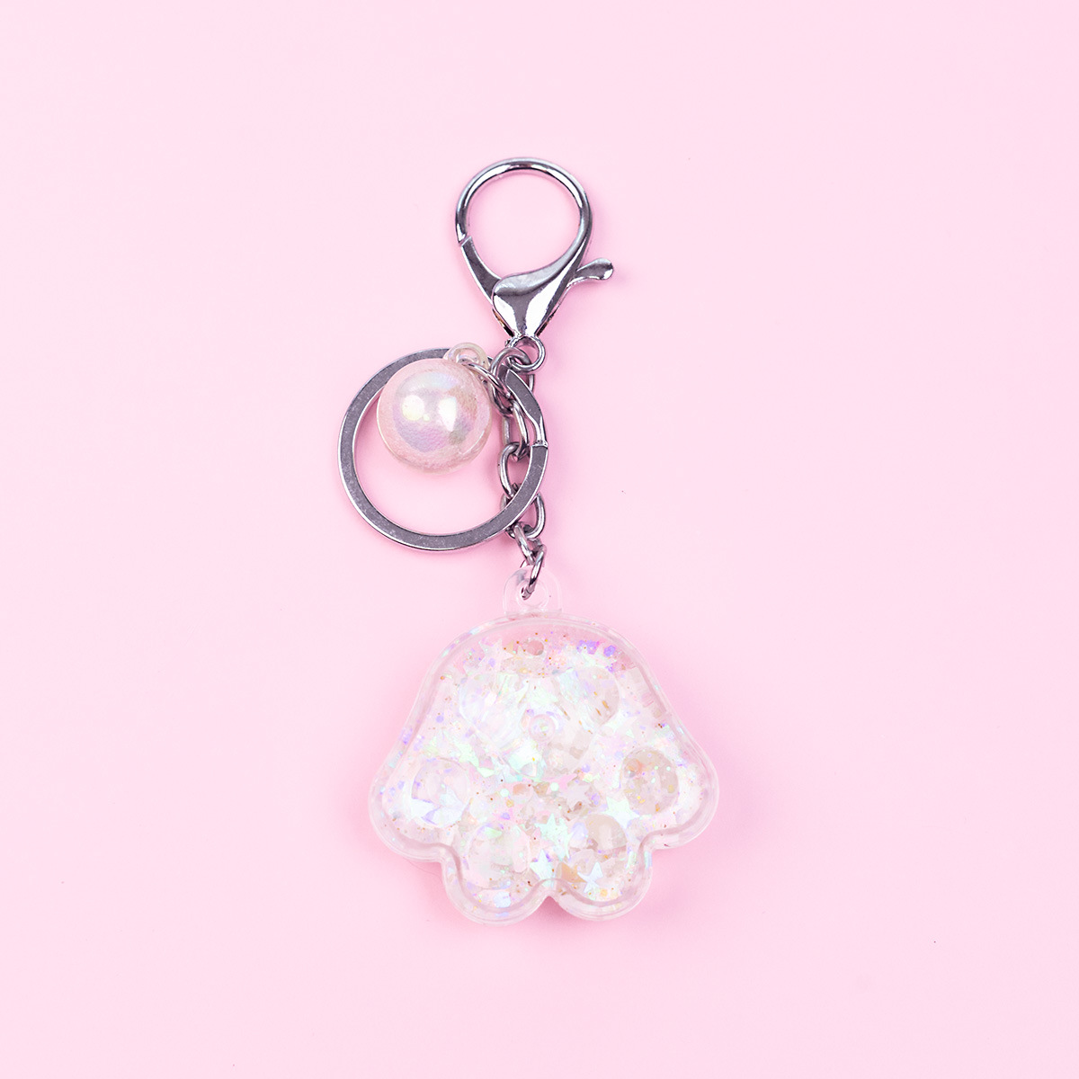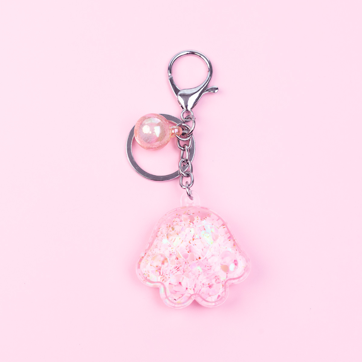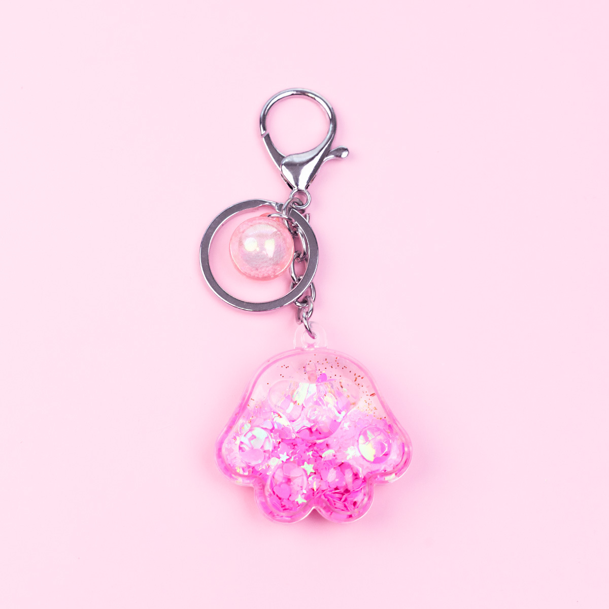 Porte-clés en forme de patte de chat en acrylique rose, mignon, dessin animé, exquis, pendentif en sable liquide pour fille, décoration de sac à dos