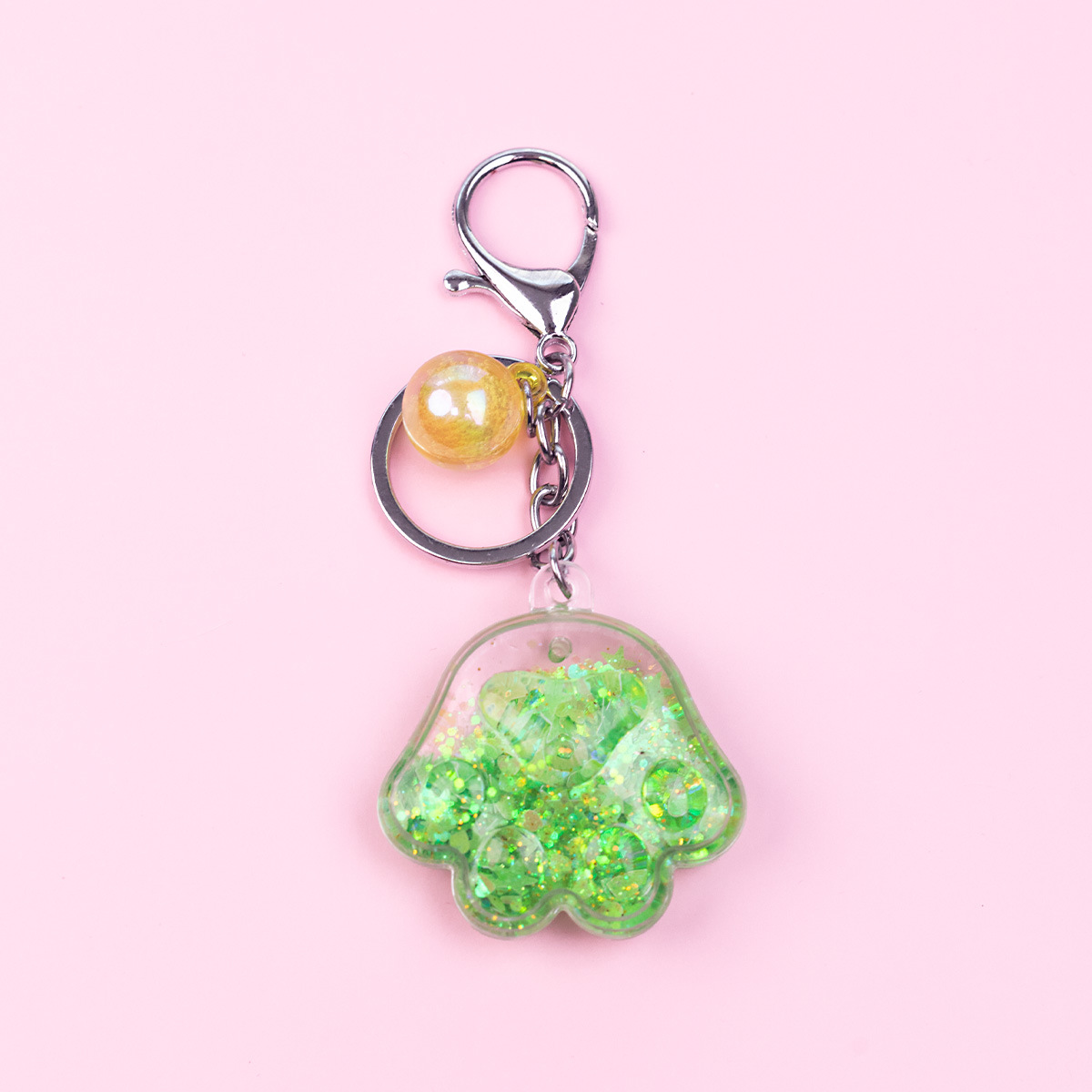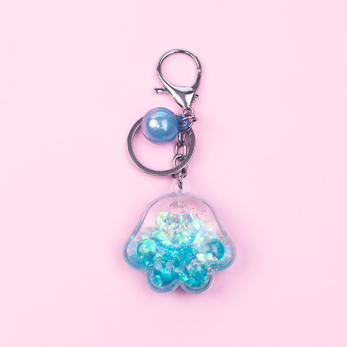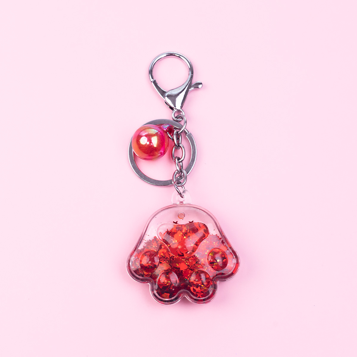 Porte-clés en forme de patte de chat en acrylique rose, mignon, dessin animé, exquis, pendentif en sable liquide pour fille, décoration de sac à dos