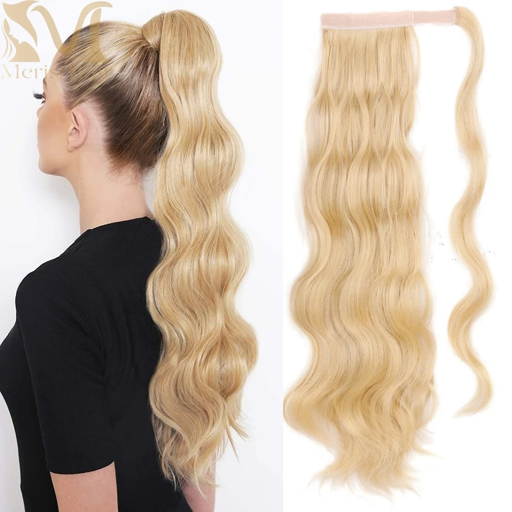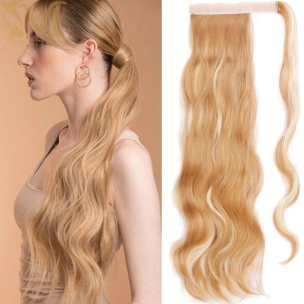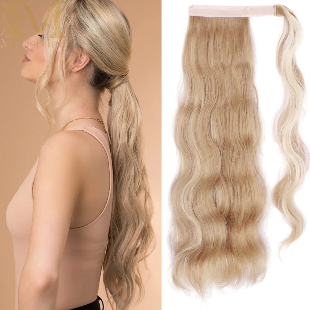 Perruque bouclée longue effet vague avec bande auto-agrippante, postiche une pièce, chignon haut et volumineux