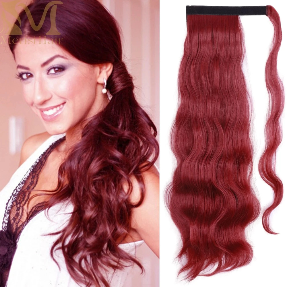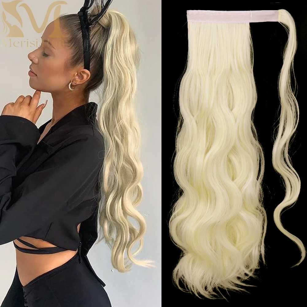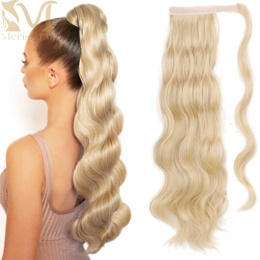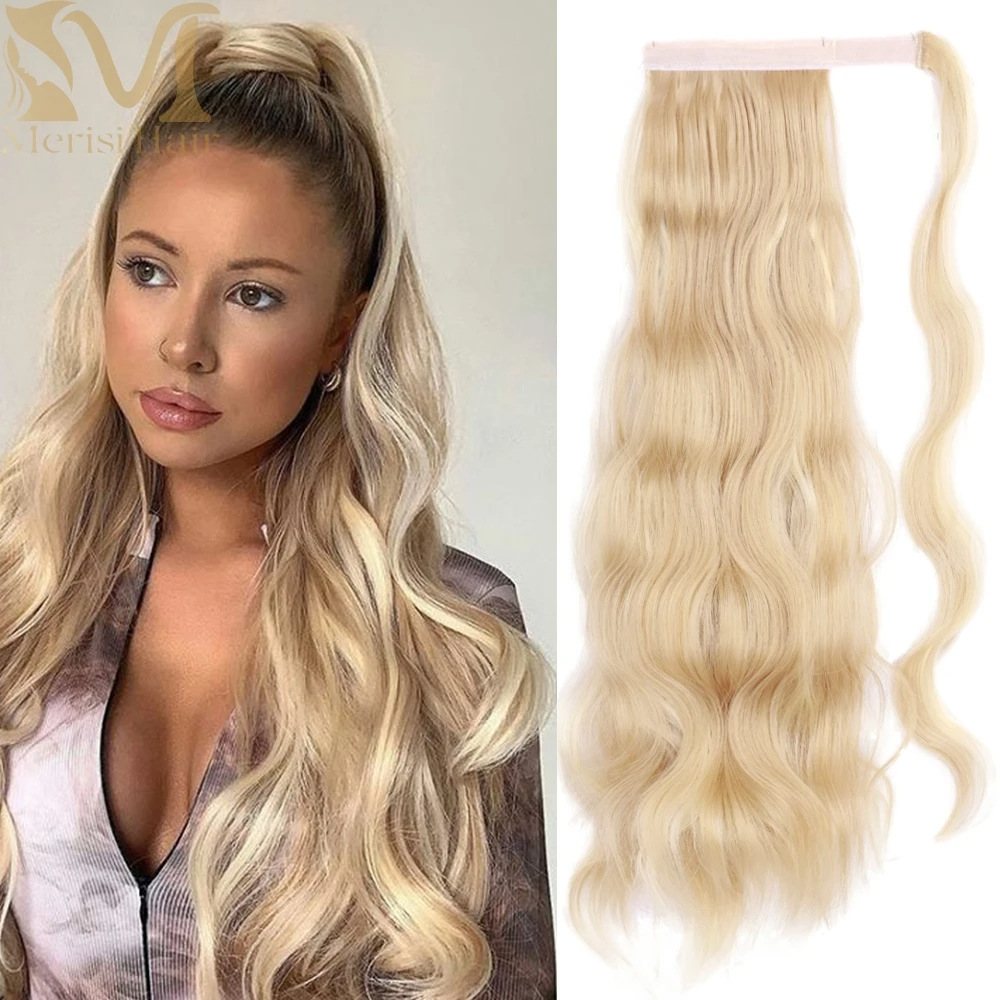 Perruque bouclée longue effet vague avec bande auto-agrippante, postiche une pièce, chignon haut et volumineux