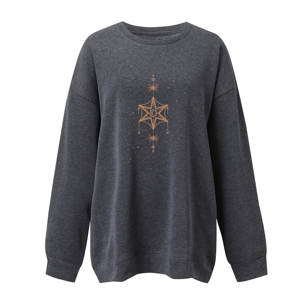 Star Pendant Shoulder Drop Sweater Round Neck Fleece Casual Warm Top