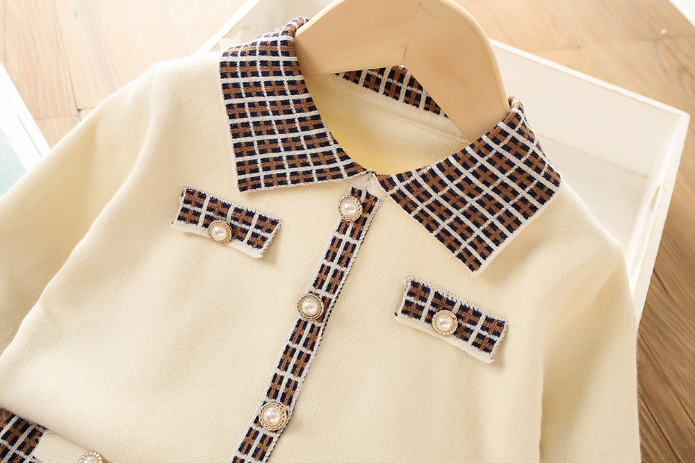Pull deux pièces pour fille, ensemble Cardigan tricoté à carreaux, petit parfum, nouvelle édition coréenne, automne/hiver 2022