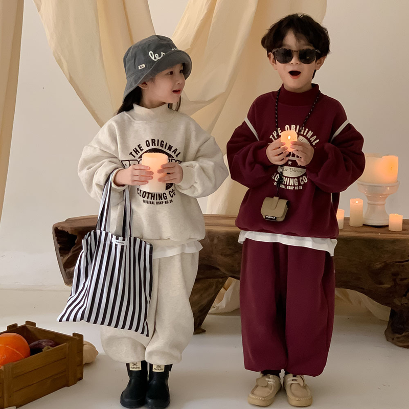 Pull en peluche à col haut pour garçons et filles, ensemble deux pièces épais avec l'alphabet coréen, pour enfants, hiver 2023