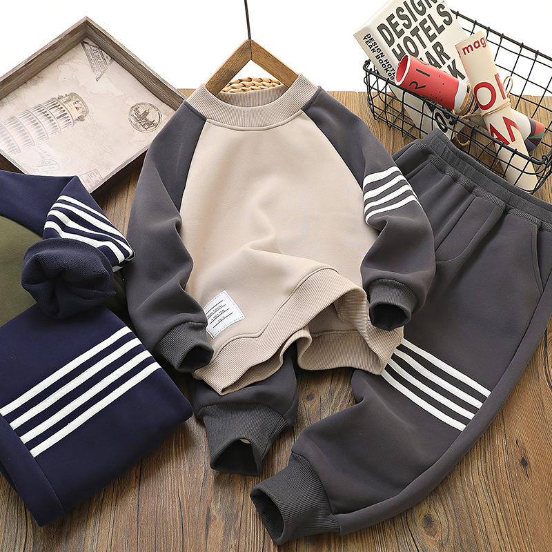 Boys' set plush sweater winter children's warm jacket girls' clothing knitted two-piece set live stream trend