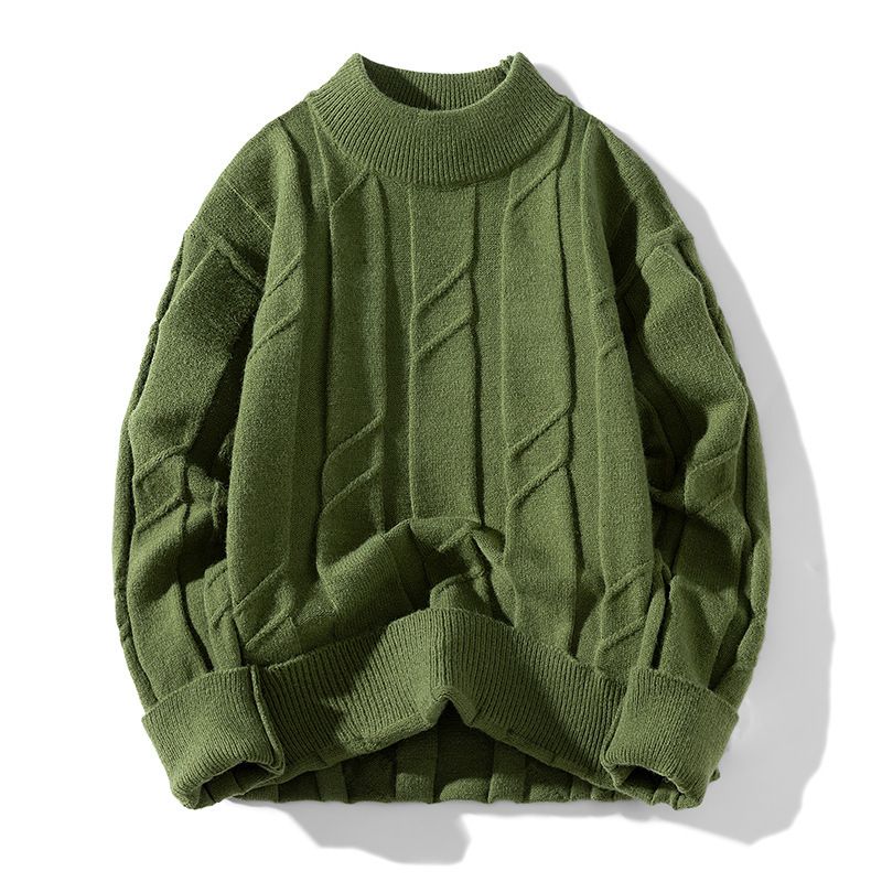 2025 Autumn Winter Classic Cable Knit Crew Neck Sweater Men Knitted Sweater Crew Neck Wrinkled Geometric Pattern Sweater