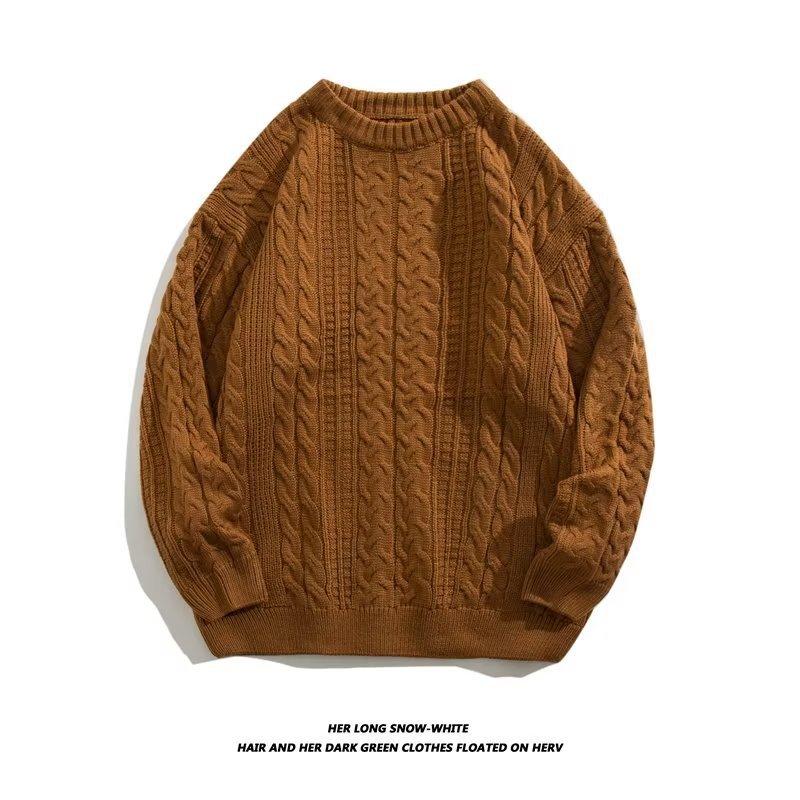 Pull en tricot torsadé pour hommes, col rond, ample, marque de mode, automne et hiver, style rétro, pull décontracté en tricot