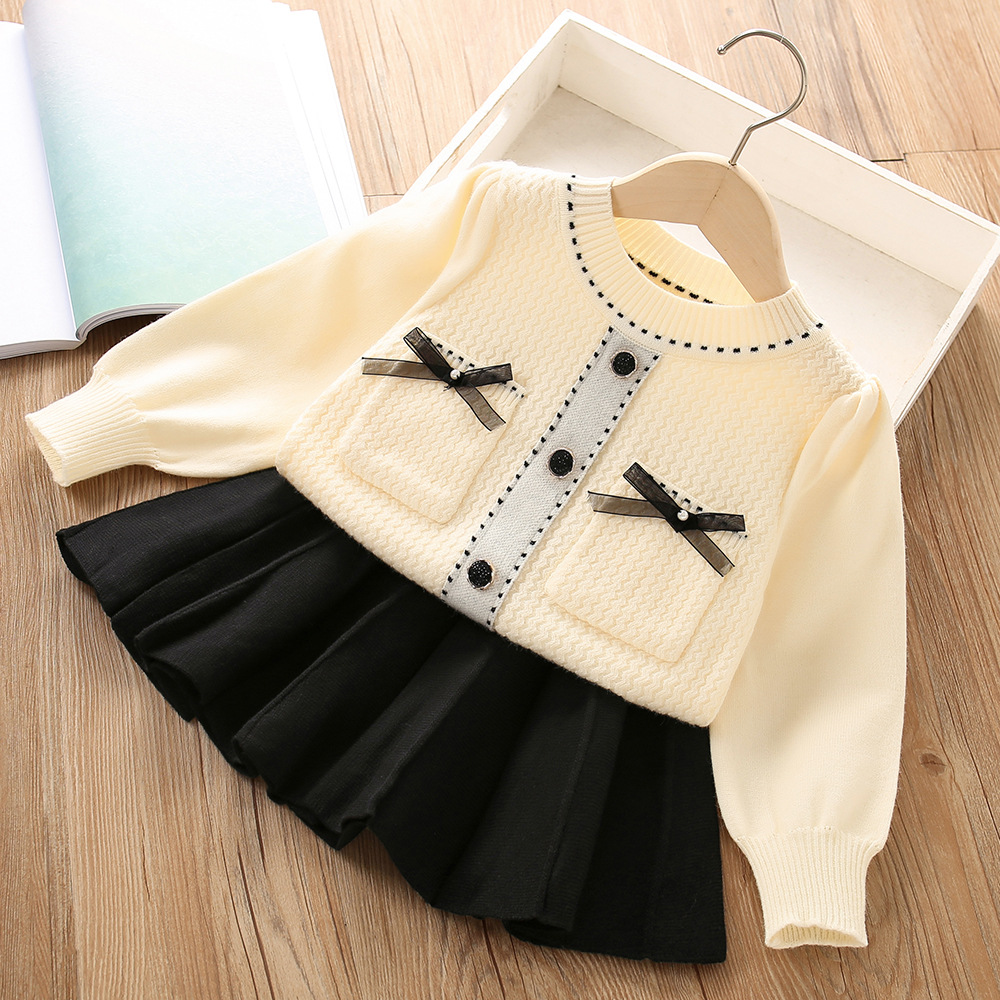 Pull pour enfants, ensemble deux pièces tricoté, Style occidental, petit parfum, pour fille, tendance, nouvelle collection automne/hiver 2022