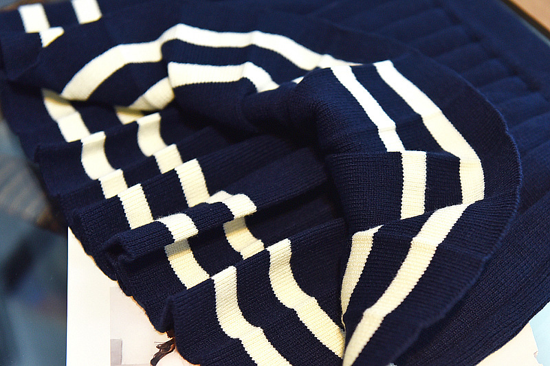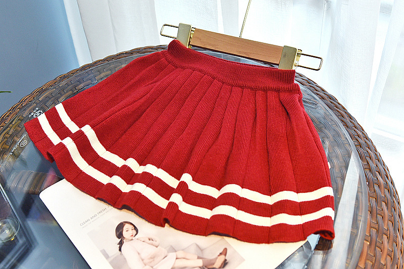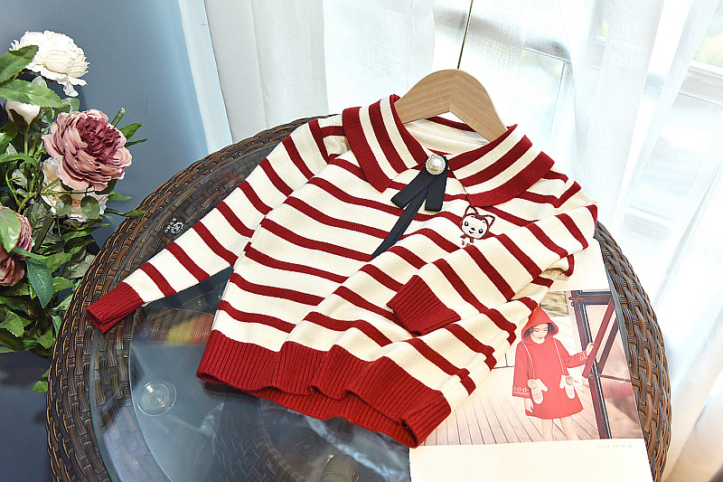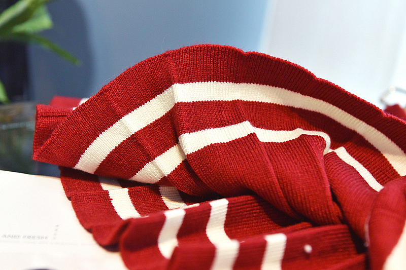 Girls navy striped sweater pleated skirt set knitted polo collar bow pullover short skirt YB213
