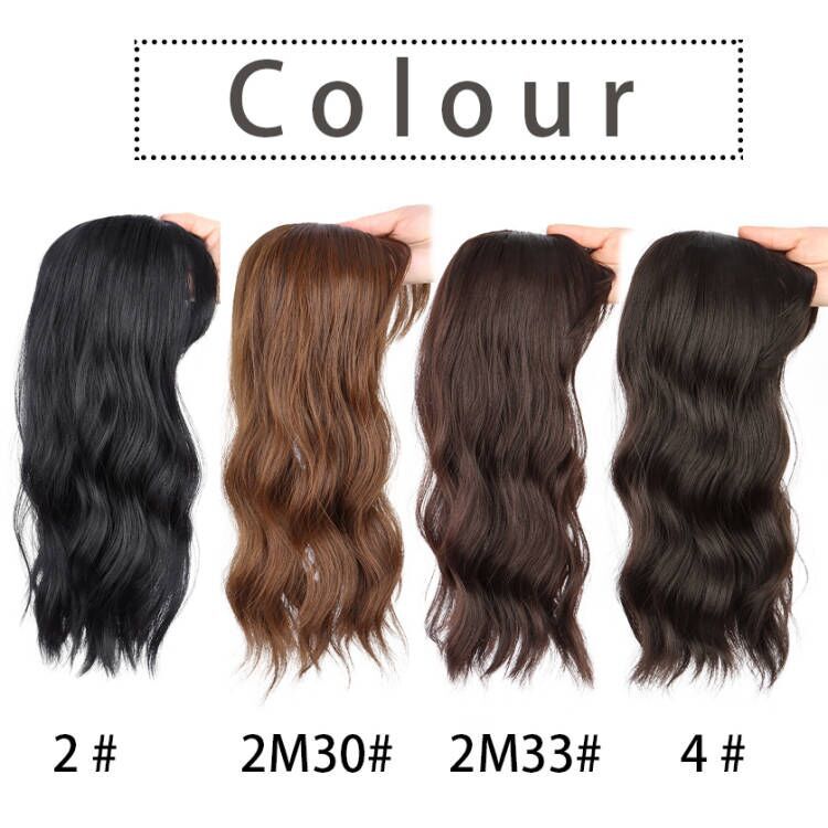 Dessus de cheveux synthétiques avec motif ondulé en laine, longue couverture bouclée couvrant le patch de cheveux blancs, perruque ondulée