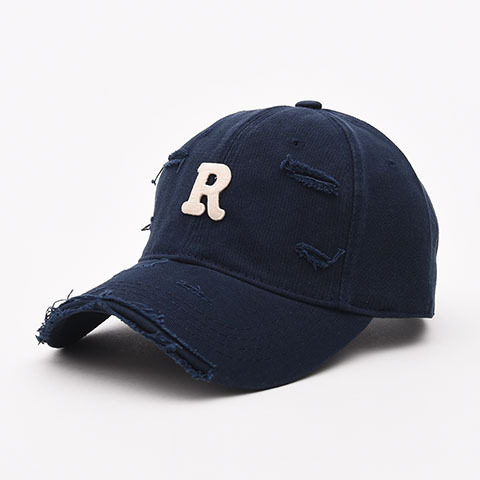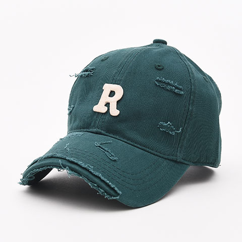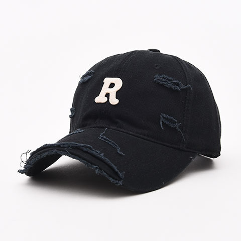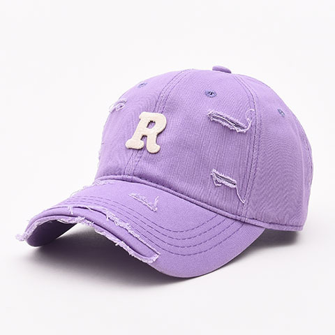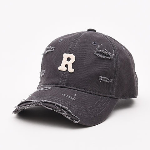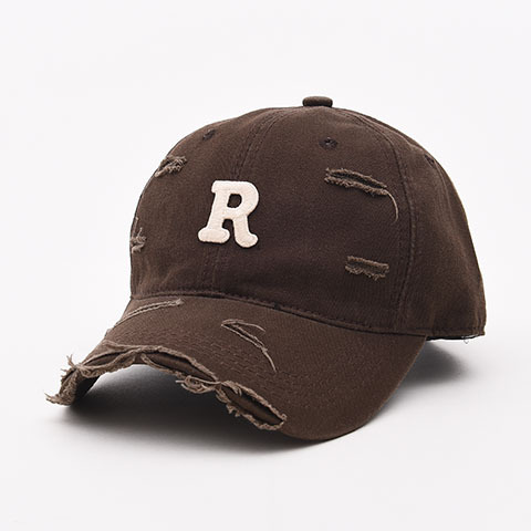 R letter baseball caps for men and women, worn out with holes and curved eaves, duckbill caps for spring and summer, sun shading, small face, big head circumference