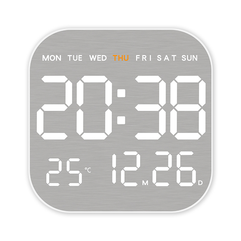 Metal Brushed Feel Wall Clock New Multi-Functional Electronic Clock LED Electronic Alarm Clock Hot Selling Simple Alarm Clock