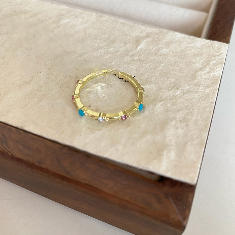 Bague plaquée or véritable, ornée d'une goutte d'huile et d'un zircon en forme de fleur, à niche ouverte pour l'index. Un style raffiné et élégant.