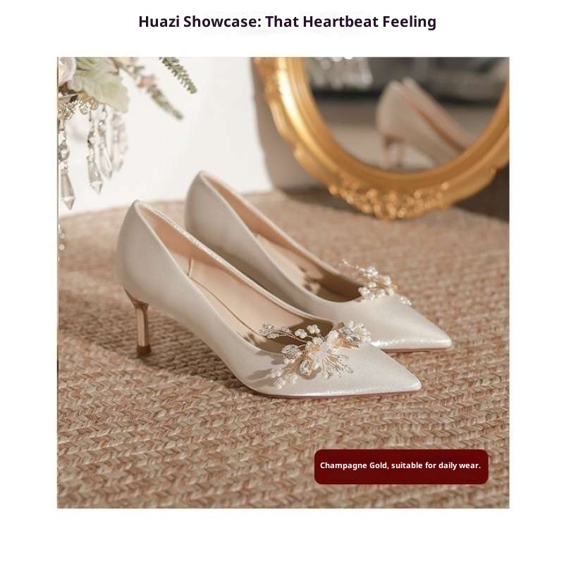 Red Wedding Shoes for Women, Suitable for Xiuhe Dress, Two-Way Wear, Stiletto Heels, Bride Shoes, 2023 New Style, Maternity Chunky Heels, Chinese Style Formal Shoes