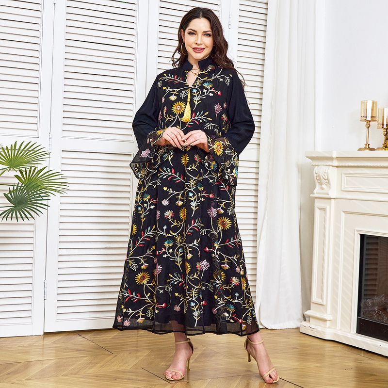 Robe Abaya à la mode, brodée de perles éblouissantes, nouvelle collection printemps 2025, manches en feuille de lotus, robe musulmane