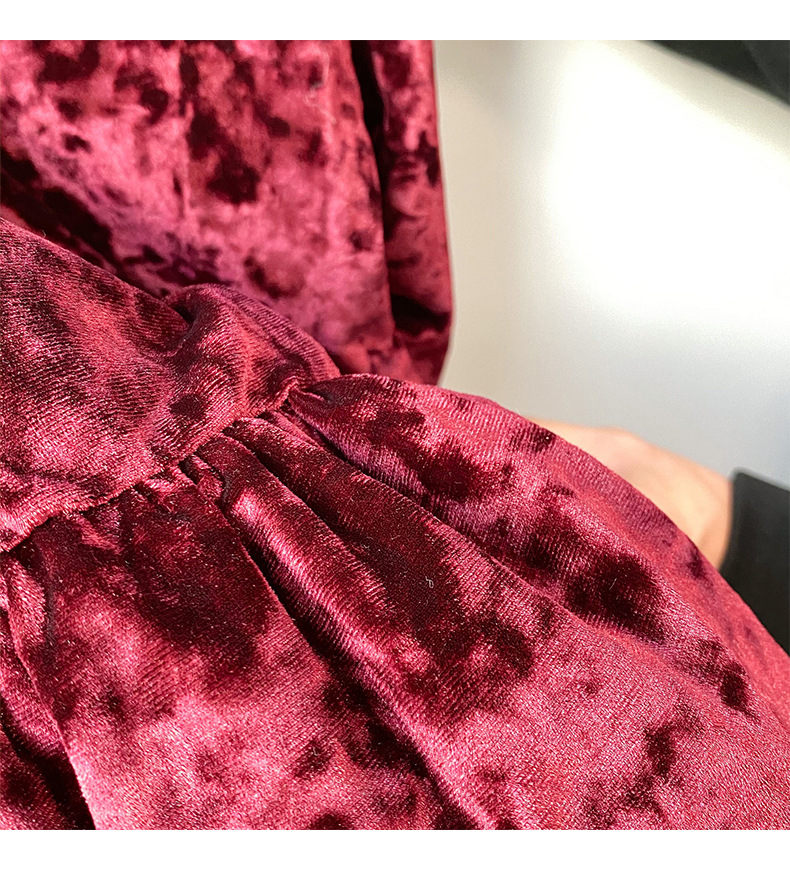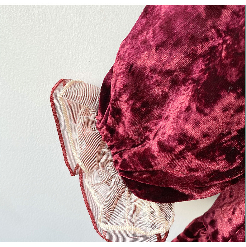 Robe formelle en velours pour fille, version coréenne, automne/hiver, rouge, manches longues, en peluche, 2023