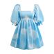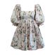 New digital printed square neck lantern short sleeved women's dress with open back and fluffy French princess skirt