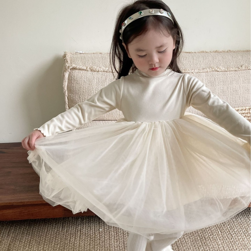 Girls' Dress South Korean Children's Wear 2023 Autumn/Winter New Product Girls' Brushed Top Women's Treasure Fluffy Gauze Skirt Cake Skirt