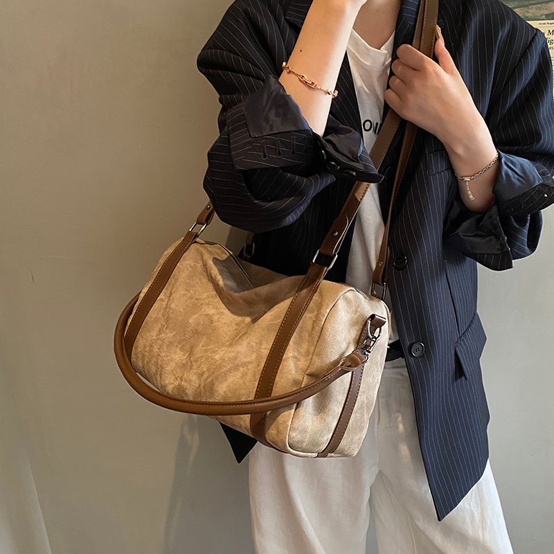 Sac Boston rétro en daim mat pour femme, nouvelle collection automne/hiver 2025, grande capacité, sac fourre-tout, sac à bandoulière simple