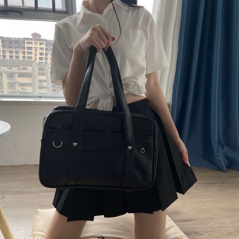 Sac à dos en PU pour uniforme de JK, sac fourre-tout à bandoulière pour filles, motif cœur, style universitaire