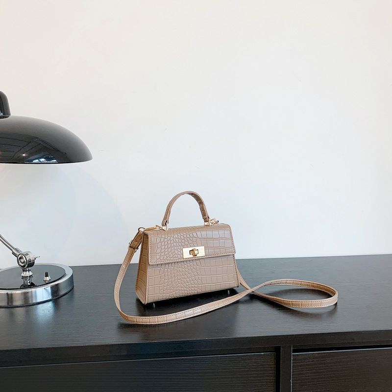 Women's Bag 2023 New Fashion Textured Stone Pattern Shoulder Bag with Rotating Lock Crossbody Handbag Small Square Bag