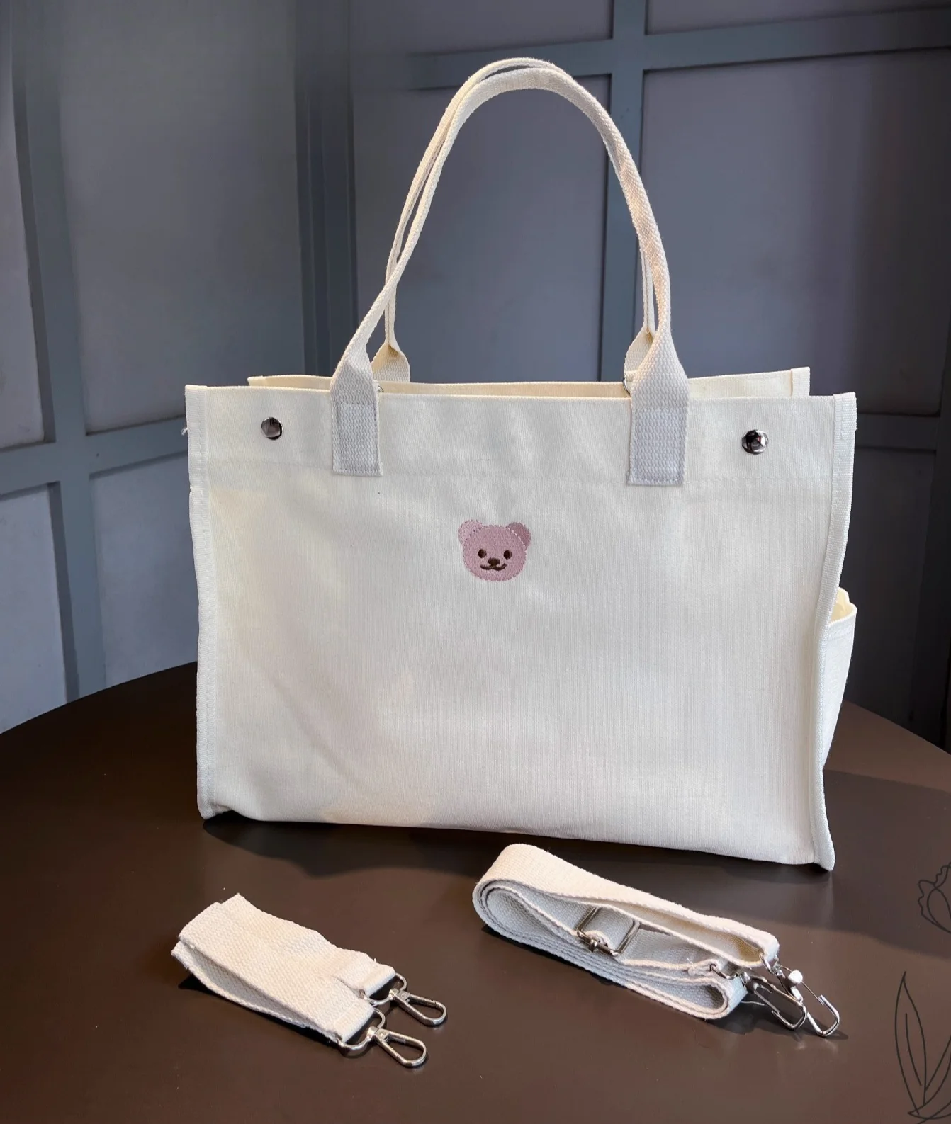 Korean ins mommy bag embroidered teddy bear mother and baby bag canvas tote handbag for outdoor fashion, large capacity bag