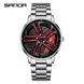 Montre homme SANDA P1090 New Wheel Series Cool Dynamic Quartz Movement Steel Band Personnalisable