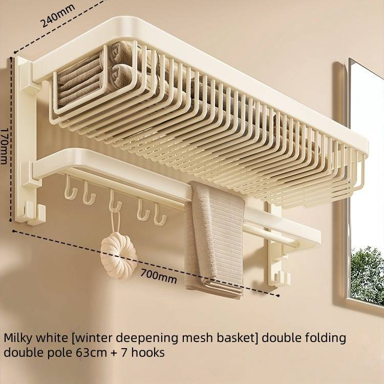 Ensemble porte-serviettes de salle de bain blanc crème, étagère murale en aluminium Space avec barres et crochets pliables, organisateur de salle de bain sans perçage pour douche et toilettes.