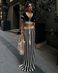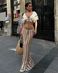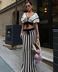 Ensemble de jupe longue en tricot à rayures creuses et col en V sexy pour femme