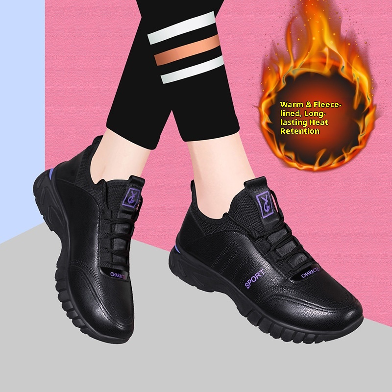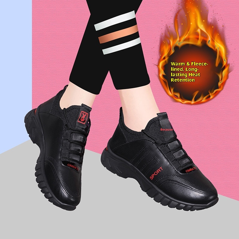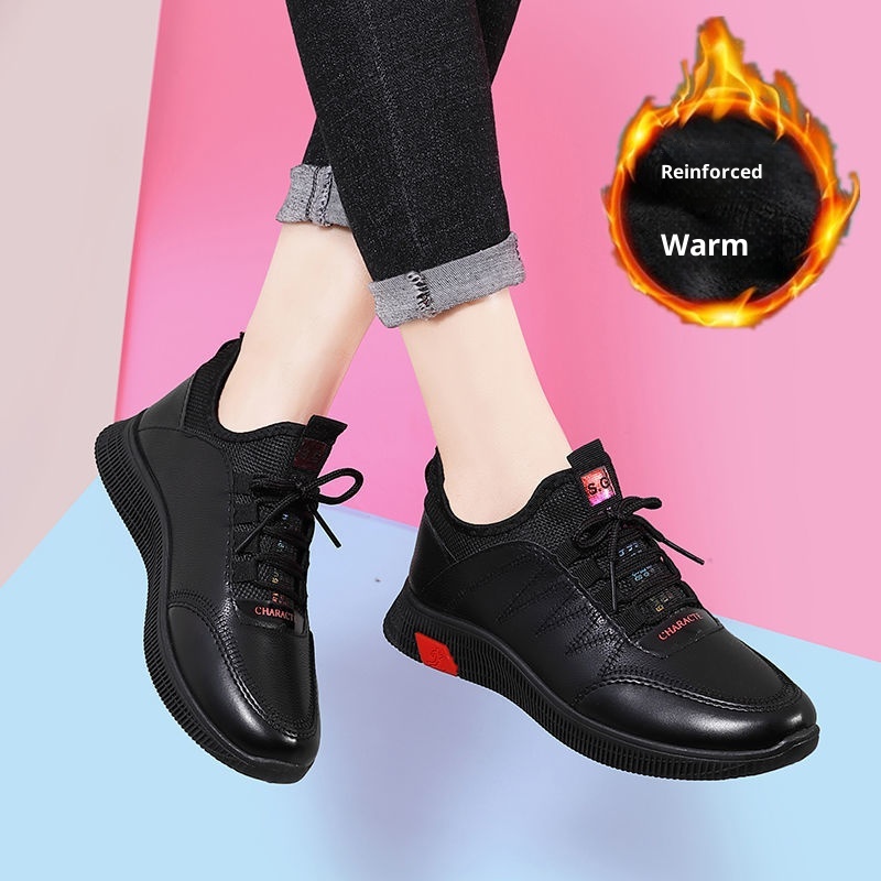 ShoeGlobe Automne-Hiver 2024 - Nouveautés Chaussures Femme Décontractées en Cuir, Semelle Souple, Doublure Polaire, Chaudes et Confortables - Chaussures de Bureau